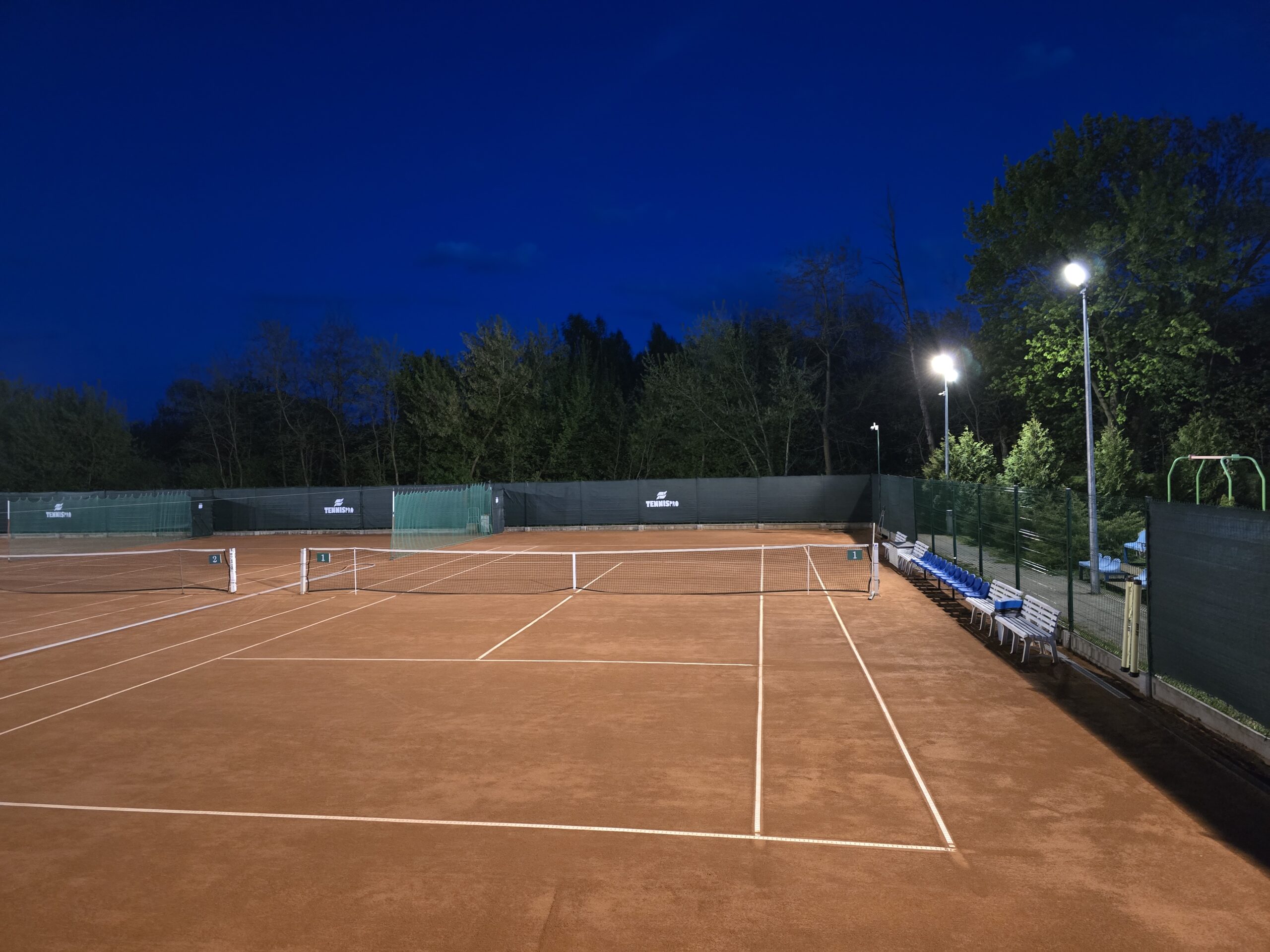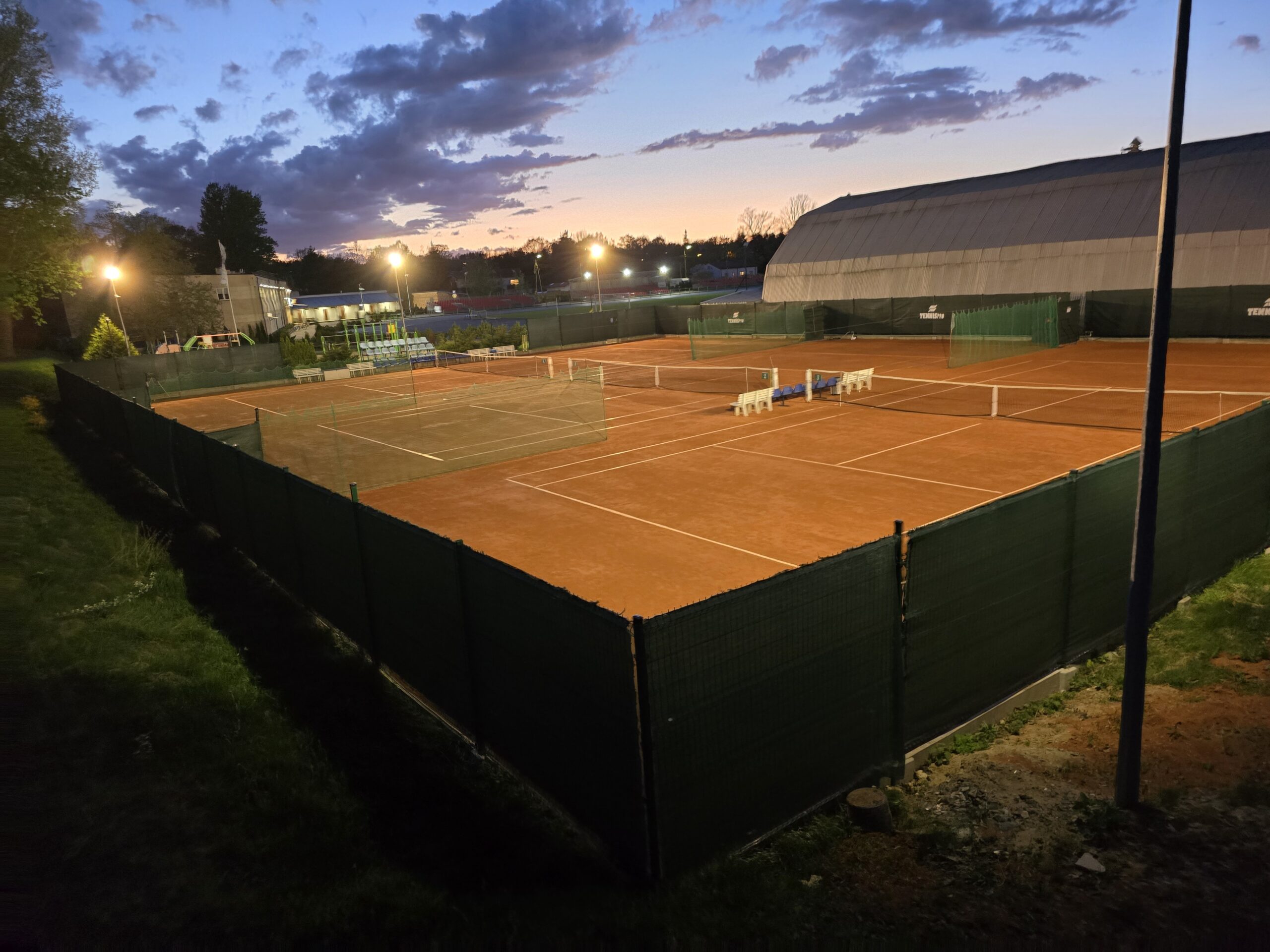 - Sztuczne oświetlenie – Nasz obiekt jest wyposażony w udogodnienia, takie jak oświetlenie, które umożliwia grę nawet po zmroku, oraz system odwadniania dzięki któremu, krótko po ulewie korty są gotowe do gry.